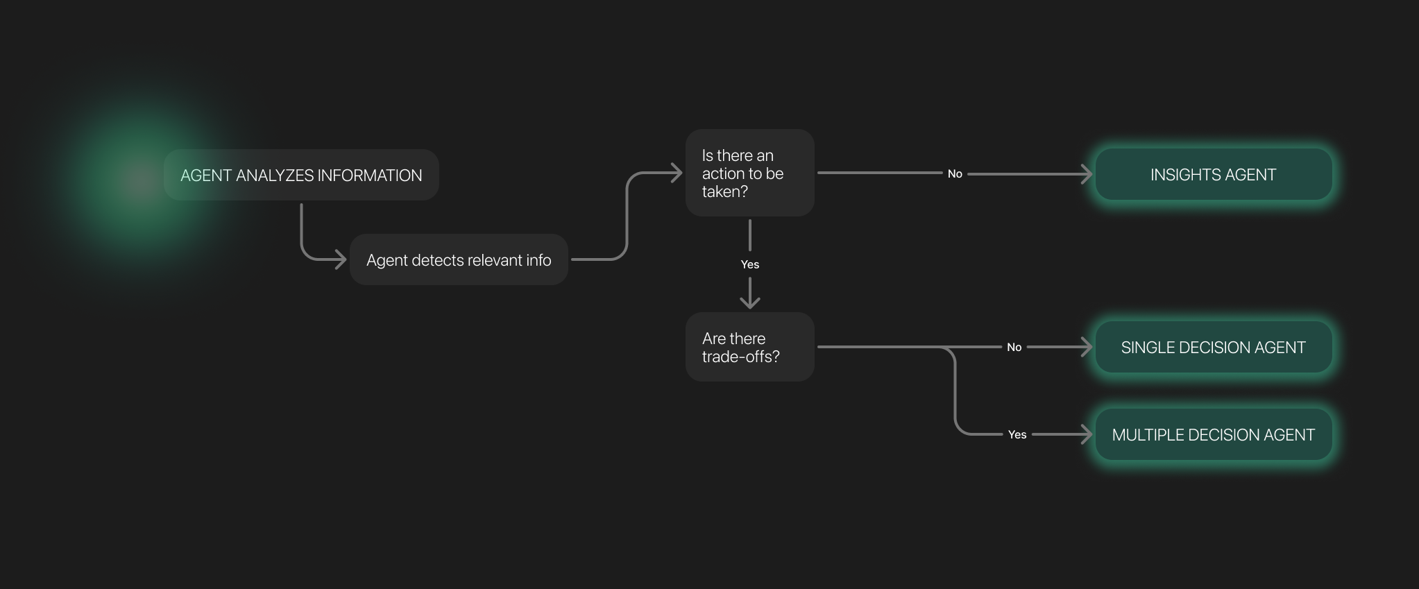 The first step was analyzing how agents interacted across the system. The architecture was redesigned into three core agent types, each with a clear responsibility in the decision pipeline.